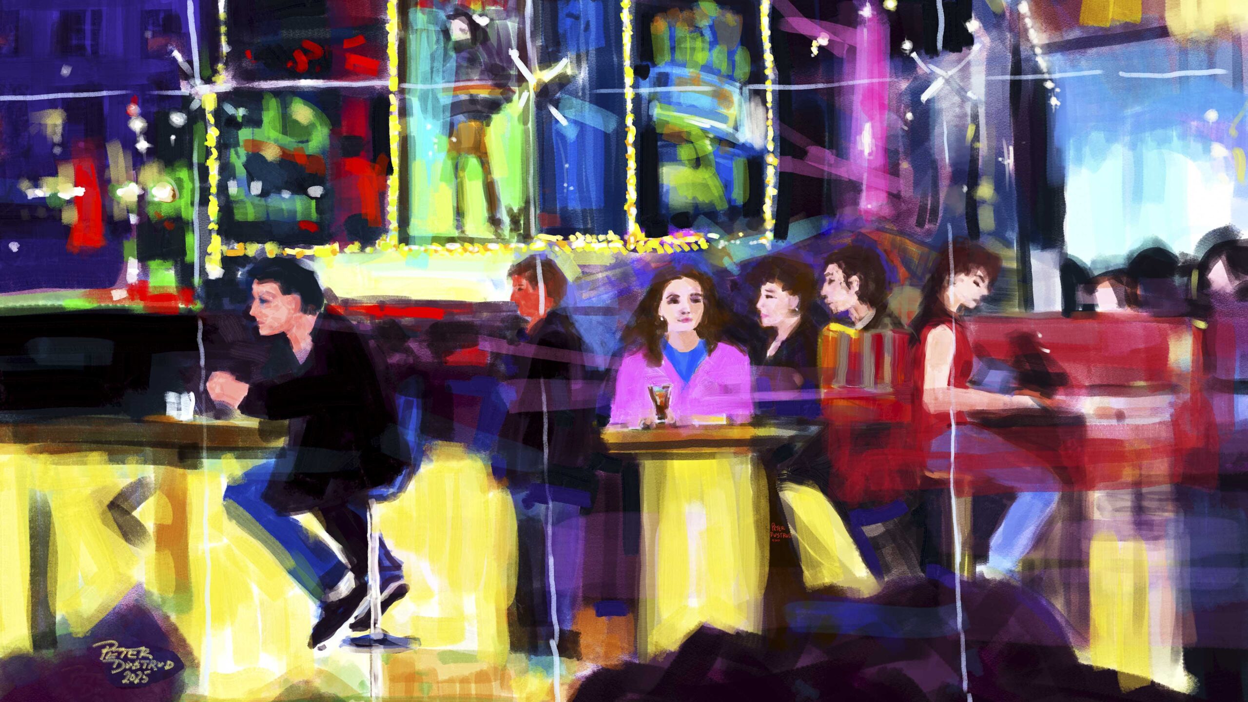 “After Midnight, NYC” a night scene of a cafe
