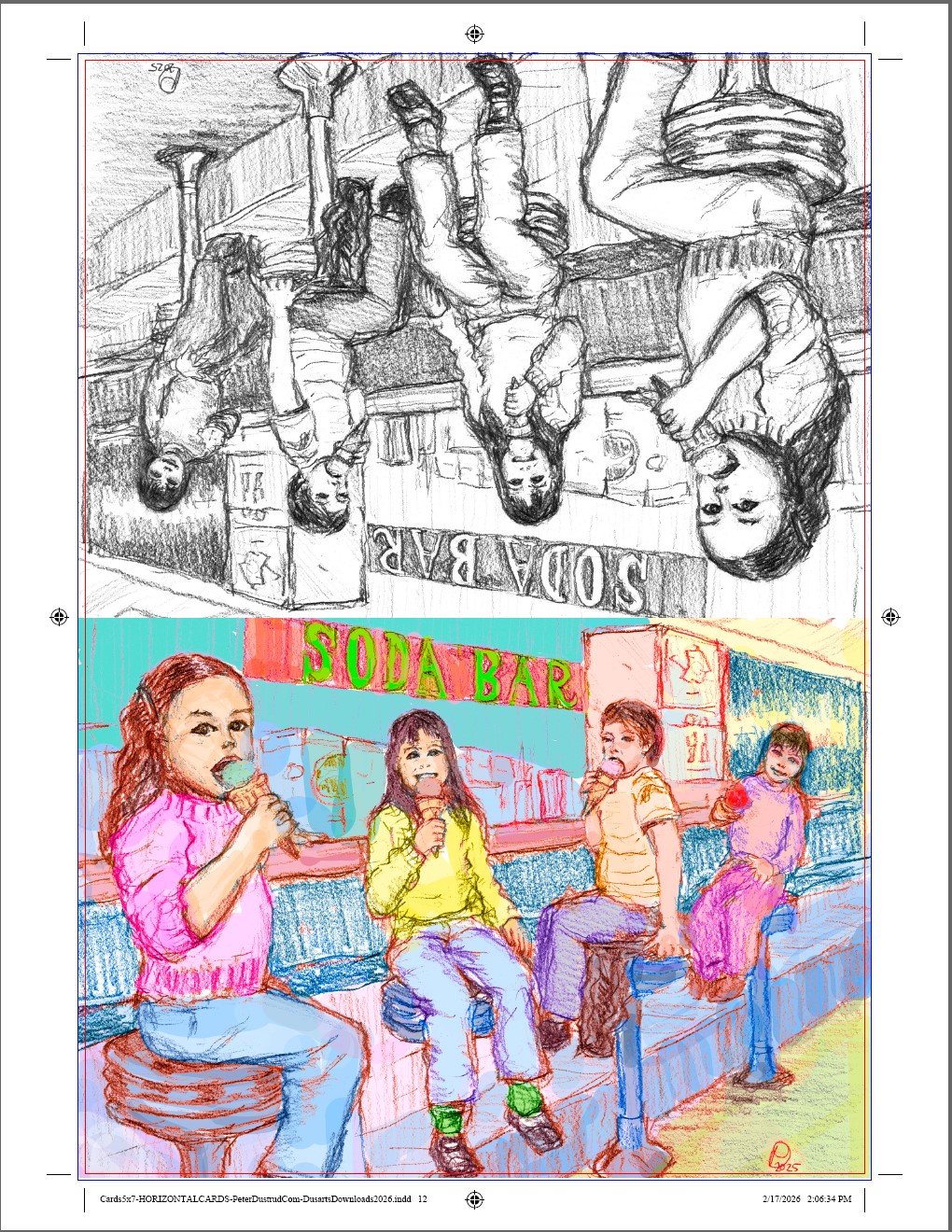 Card Printable Download: “Soda Bar” 5×7 folded card design mono+color